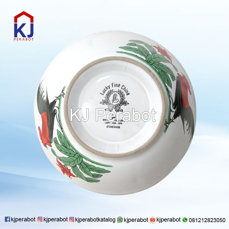 Mangkuk klasik bermotif ayam jago ini siap untuk menggugah selera makan Anda. Mangkuk berbahan dasar porselin ini dapat Anda gunakan untuk menghidangkan aneka makanan berkuah, baik panas maupun dingin. Sangat cocok bagi digunakan untuk Anda yang memiliki usaha warung makan, usaha mie ayam atau bakso maupun resto dengan tema klasik.