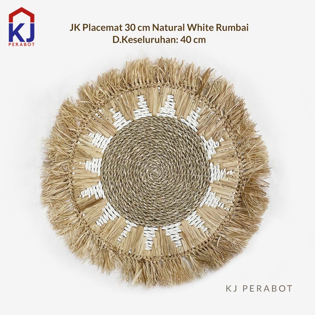 JK PLACEMAT 30CM NATURAL WHITE RUMBAI WHITE